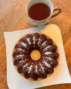 - Verwarm de oven voor op 170 °C (hetelucht) en vet de tulbandvorm in met kokosolie.